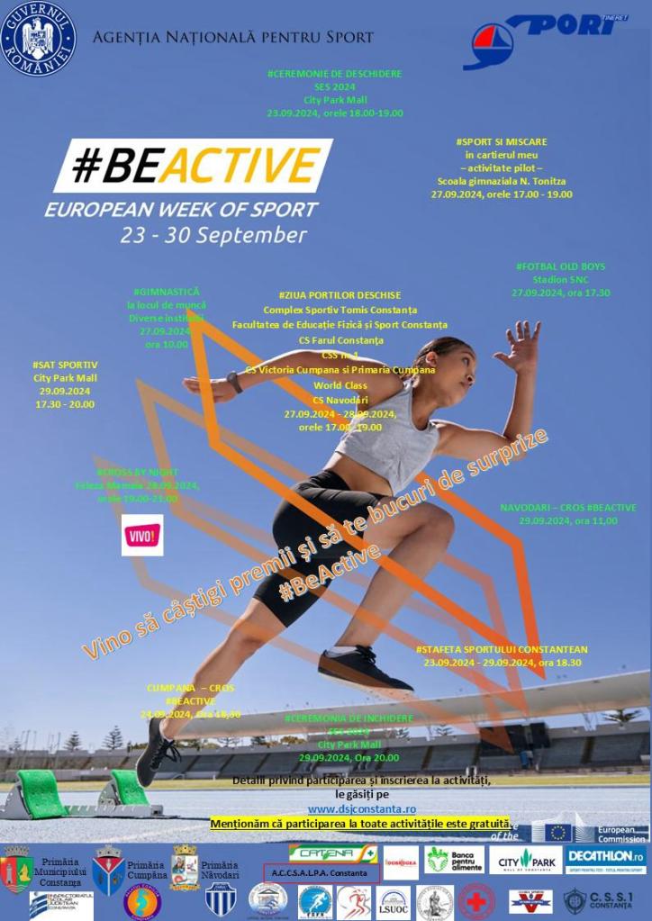 Agenția Națională pentru Sport, prin Direcția Județeană pentru Sport și Tineret Constanța, are plăcerea de a anunța desfășurarea Săptămânii Europene a Sportului – Ediția 2024, în perioada 23 – 30 Septembrie.