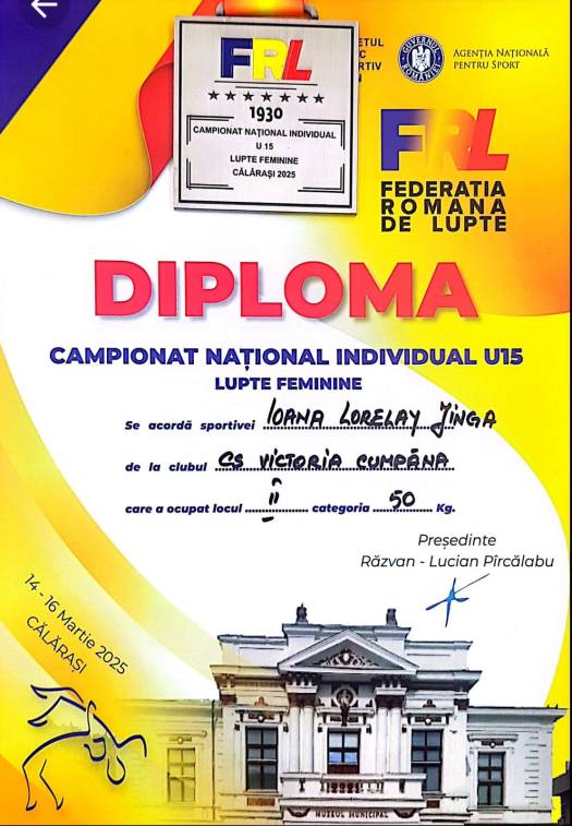 Sportivele secției lupte a CS „Victoria” Cumpăna, pregătite de profesorul Vasile Vicol au obținut rezultate excelente la Campionatul Național Individual U15 – Lupte Feminine, ce s-a desfășurat în aceste zile la Călărași.