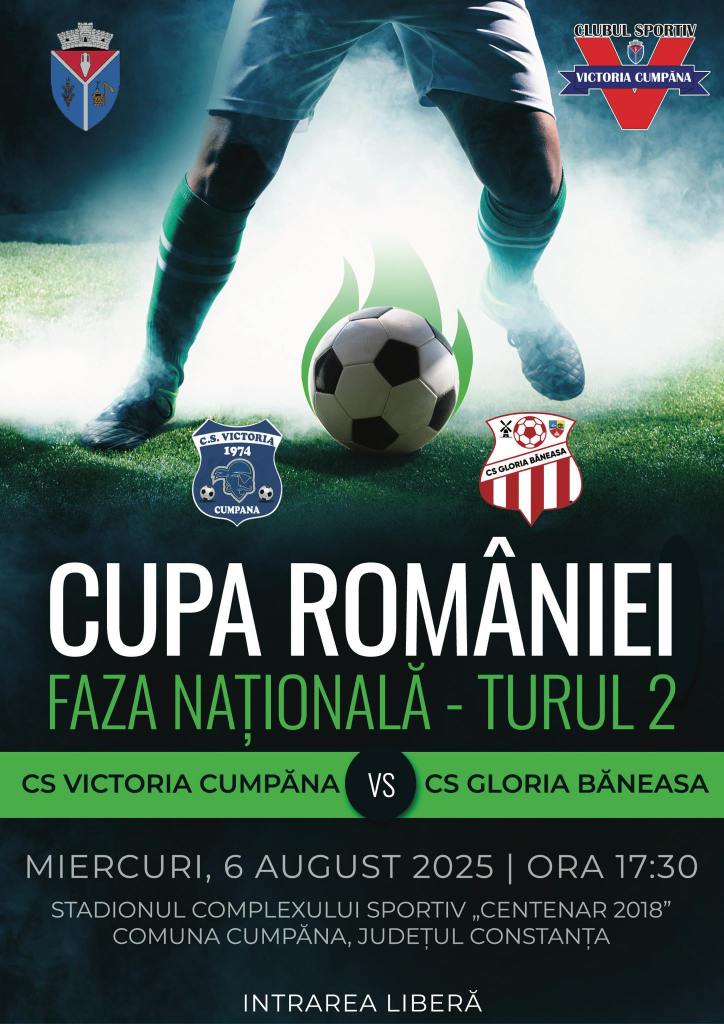 După ce a cucerit trofeul județean și apoi faza regională (Regiunea 7, Sud-Est), Victoria Cumpăna rămâne singura formație de Liga a IV-a din județul Constanța prezentă în competiție și așteaptă cu determinare confruntarea din 6 august, când va lupta pentru accederea în turul al treilea al Cupei României.