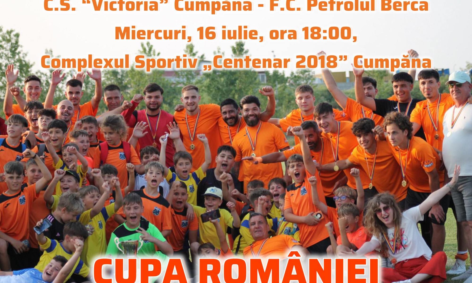 Avem deosebita bucurie de a vă invita miercuri, 16 Iulie, ora 18:00, pe stadionul Complexului Sportiv „Centenar 2018”, una se va disputa cel de-la doilea meci din faza regională a Cupei României. Adversarul din această rundă este F.C. Petrolul Berca, reprezentanta județului Buzău. După victoria spectaculoasă de la Gugești, echipa noastră are nevoie de sprijinul …